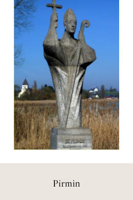 Die Herkunft des Namens "Pirmin" ist unsicher. Er könnte aus dem Keltischen stammen und würde dann "der Bärenmann" bedeuten. Die lateinische Form "Pirminus" könnte aber auch vom römischen Namen "Firmin" stammen, was so viel wie "der aufrechte Mann" heißt.