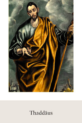 Der Name „Thaddäus“ geht auf einen griechischen Vornamen zurück, dessen genaue Herkunft ungeklärt ist. Vermutlich stammt er ursprünglich aus dem Aramäischen und könnte dann übersetzt werden mit „der verständige Mann“. Es gibt den Namen in vielen Sprachen Thadée (französisch), Taddeo (italienisch) oder Tadeáš (tschechisch).