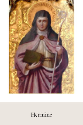 Der Name „Hermine“ stammt aus dem Althochdeutschen und kann übersetzt werden mit „die Kriegerin“ oder „die Frau des Heeres“. Es gibt den Namen auch in einigen anderen Sprachen wie Herminie (französisch) oder Erminia (italienisch) und in Kurzformen wie Herma, Mina oder Minna. Eine alte germanische Form ist die der Namenspatronin Irmina.
