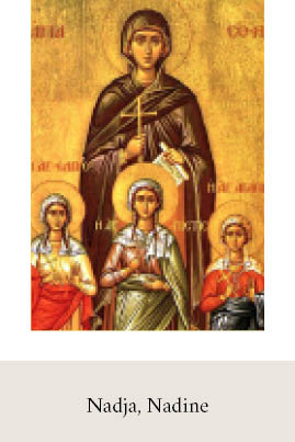 Der Name „Nadja“ ist eine Koseform des russischen Namens „Nadeschda“. „Nadine“ wiederum ist eine französische Ableitung davon; deutsch auch als „Nadin“. Der Name „Nadeschda“ bedeutet „die Hoffnung“ und ist damit eine der drei christlichen Tugenden: Glaube, Liebe, Hoffnung.