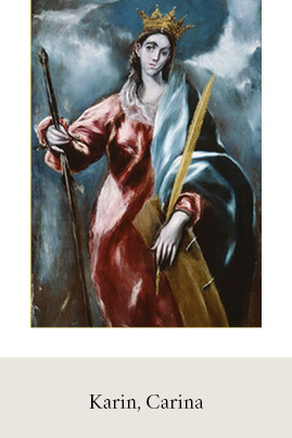 „Karin“ und „Carina“ sind Kurzformen des Namens „Katharina“. Dieser stammt aus dem Griechischen und bedeutet „die Reine“. Er ist ein weltweit verbreiteter Name, den es in vielen Varianten gibt. Die Kurzform „Karin“ stammt ursprünglich aus dem Schwedischen.