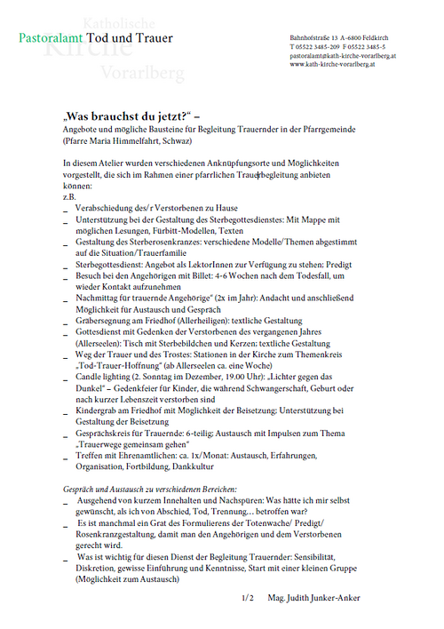 Stationen der Trauerräume - Caritas Vorarlberg
